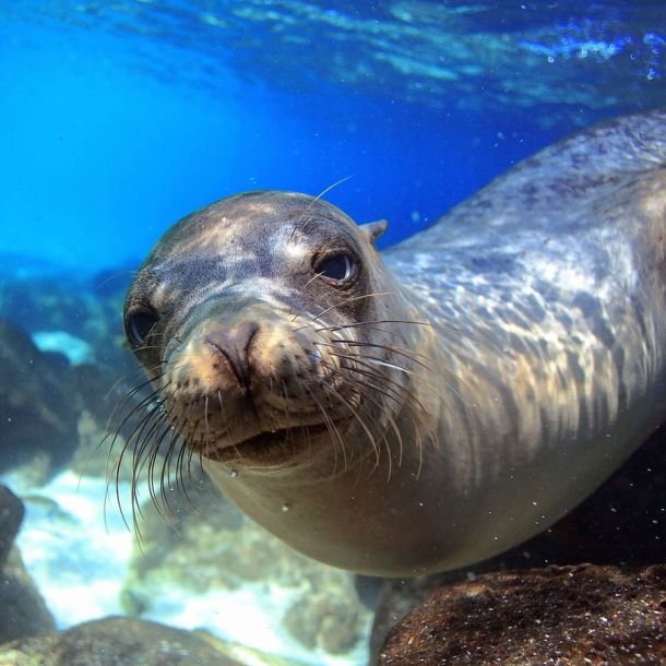 See giant tortoises, blue-footed boobies, marine iguanas, and hammerhead sharks.